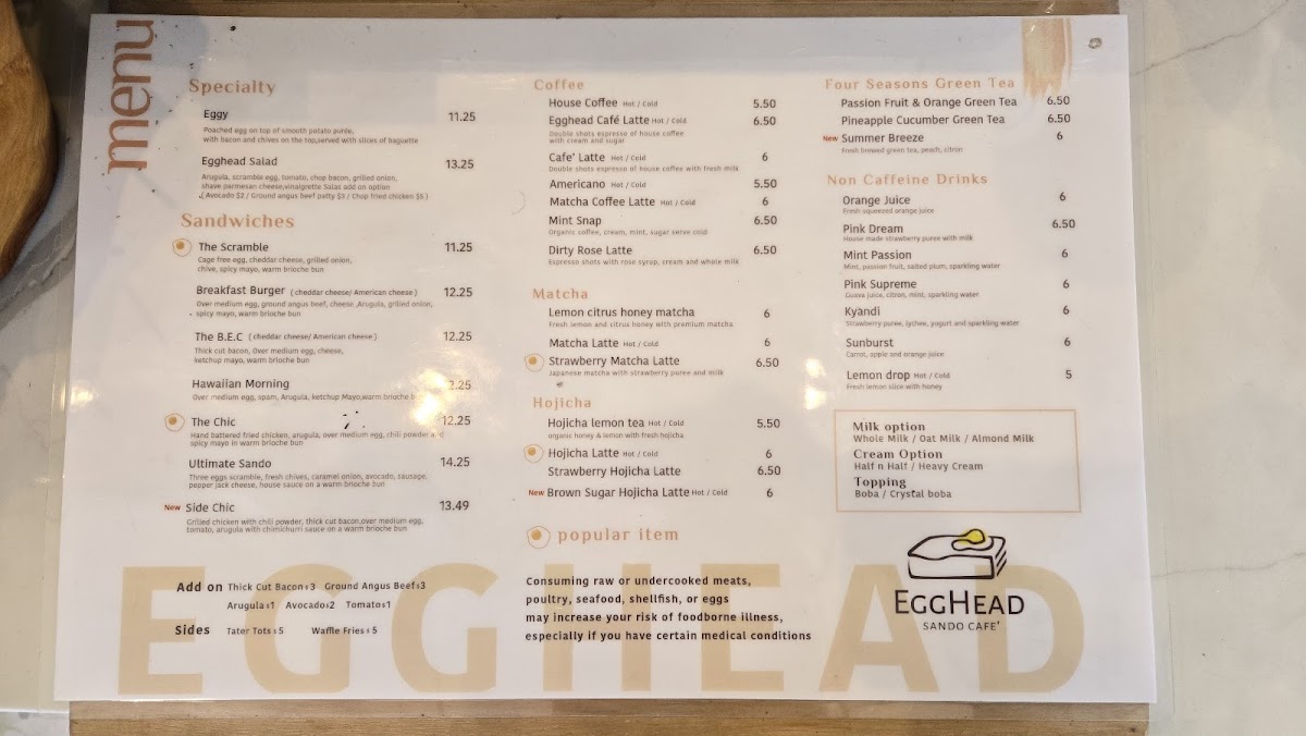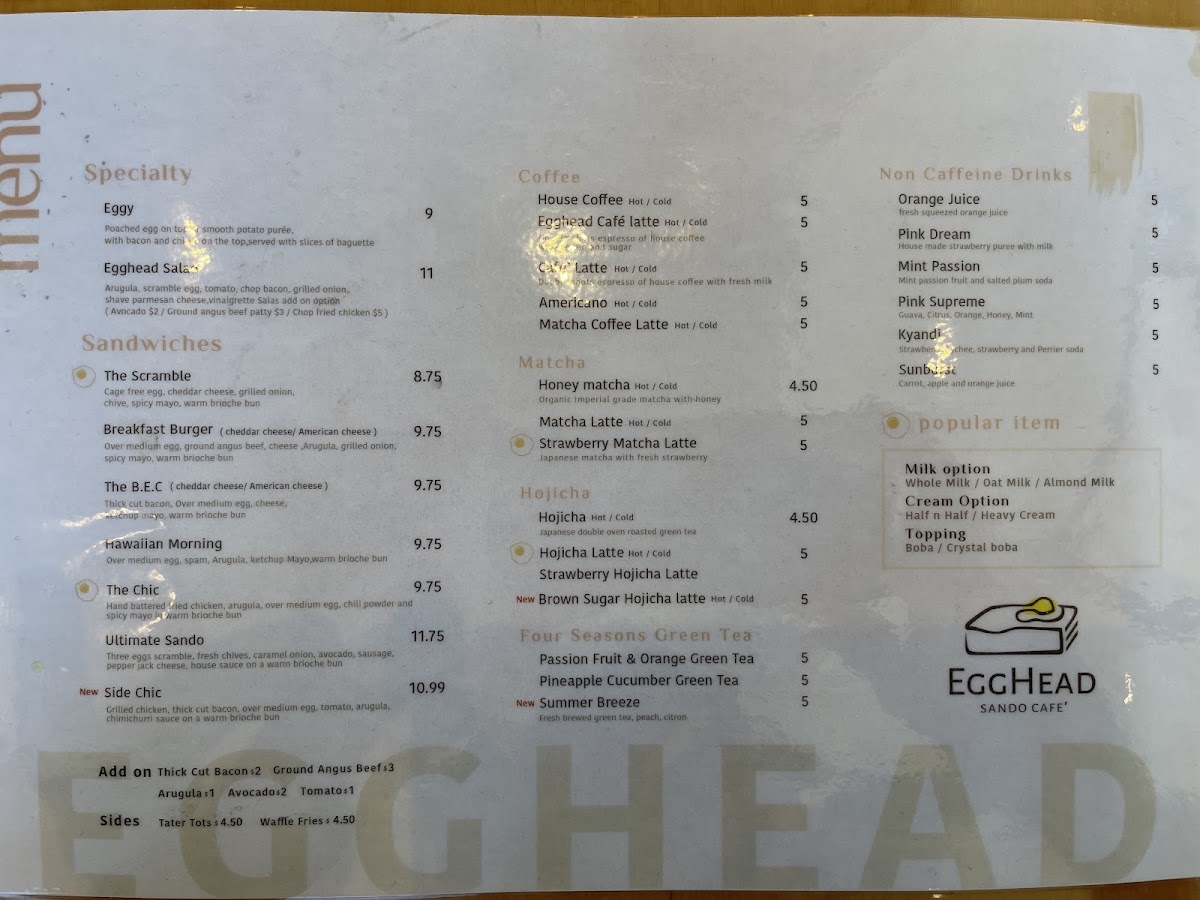 Welcome to EggHead Sando Café, a delightful breakfast haven nestled in San Jose, California. Known for its fresh and innovative take on the classic breakfast sandwich, this café is a must-visit spot for anyone wanting to kickstart their day with flavor and flair.