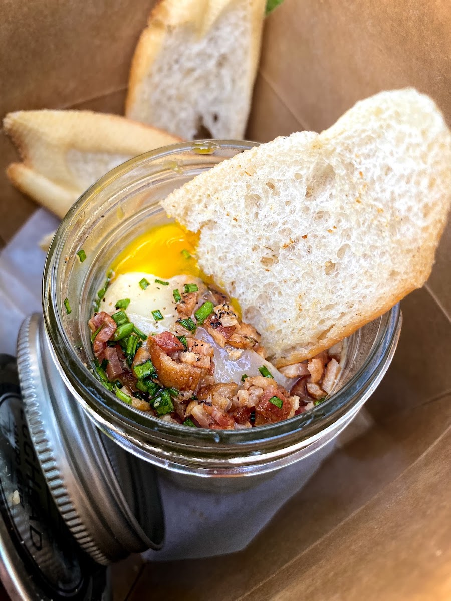 The star of the show here is undoubtedly the food, with a menu that tantalizes the senses and offers something for everyone. The Egghead Salad is a signature dish, featuring a luscious three-egg scramble adorned with melted cheddar cheese and caramelized onions, perched atop fresh arugula and bacon, all drizzled with a zesty vinaigrette—this dish is not only a feast for the eyes but a hug for your taste buds at just $13.95. Another showstopper is the Eggy, an indulgent poached egg resting on a silky potato purée, served with crispy bacon and chives, alongside four perfectly toasted baguette slices for $12.00—it's a comforting must-try.
